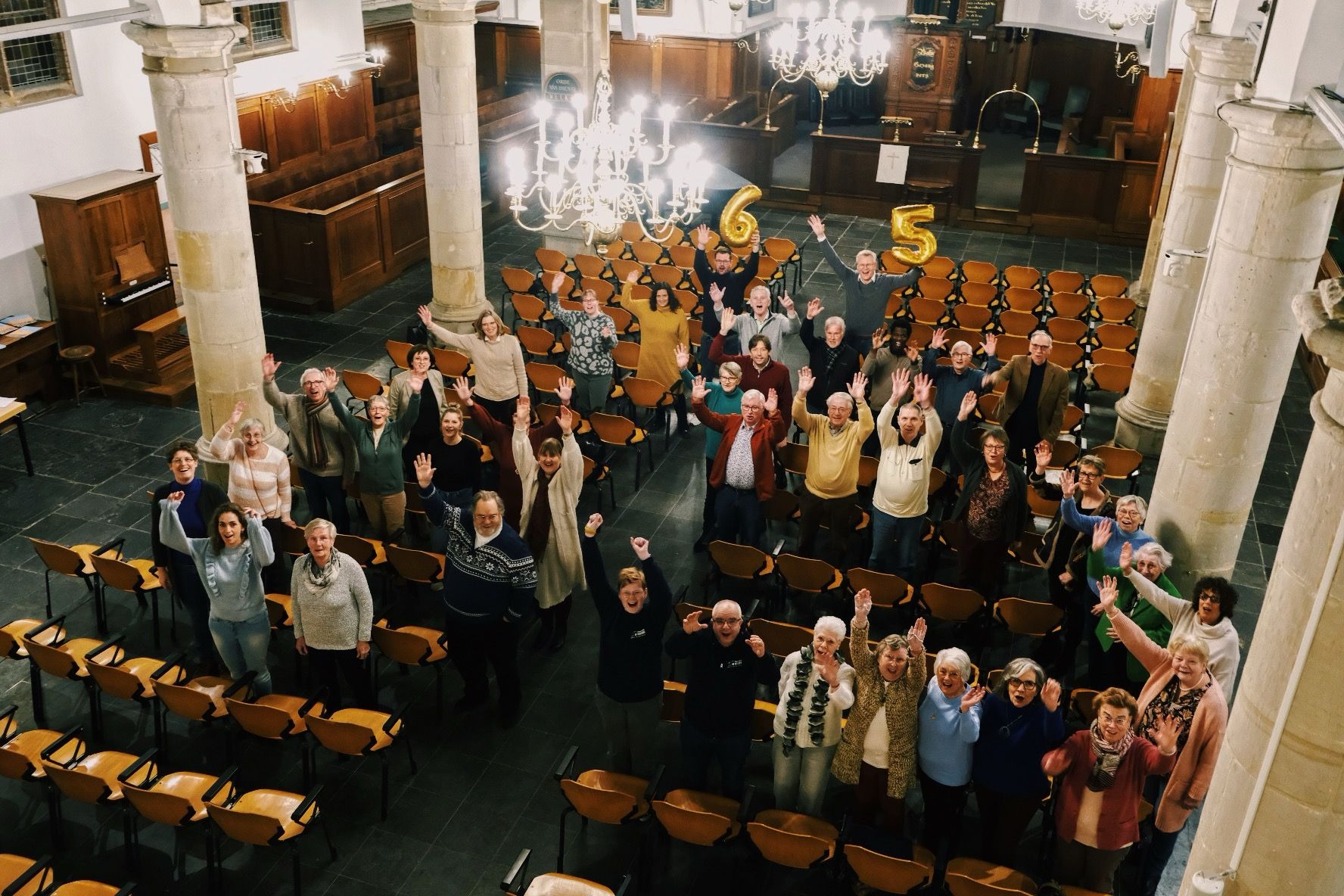 Met zo’n 40 leden repeteren we iedere week en zingen we zo’n 15 keer per jaar in kerken, woonzorgcentra, ziekenhuizen en geven we één of meerdere concerten.